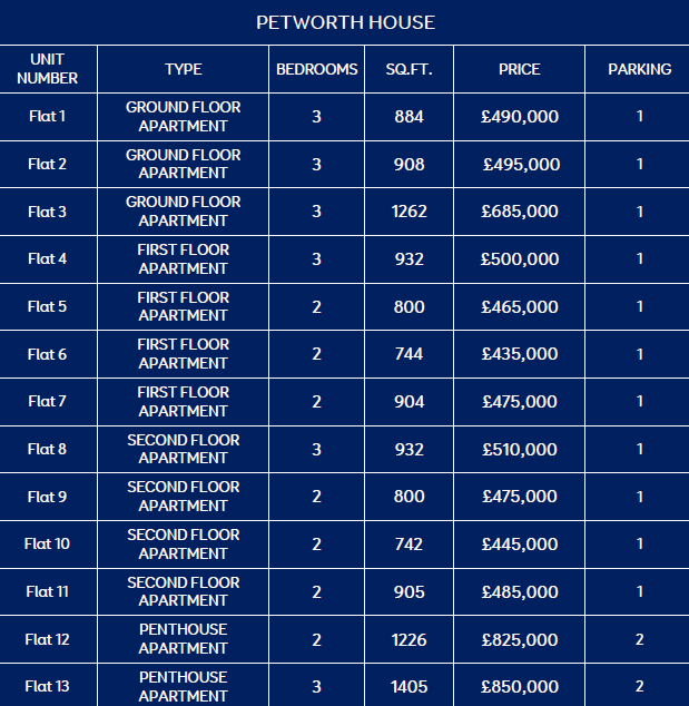 There has been huge anticipation around this latest release, that is why we are offering our clients an exclusive first look at these exceptional properties. This means you have the chance to reserve your preferred apartment off plan, before they are publicly listed on major property portals. This is a rare opportunity to be among the first to choose from the finest selection available in this sought-after development. If you CLICK HERE and visit the website you can download the latest brochure with all the floor plans for Firle & Petworth house. The Price List is copied below.